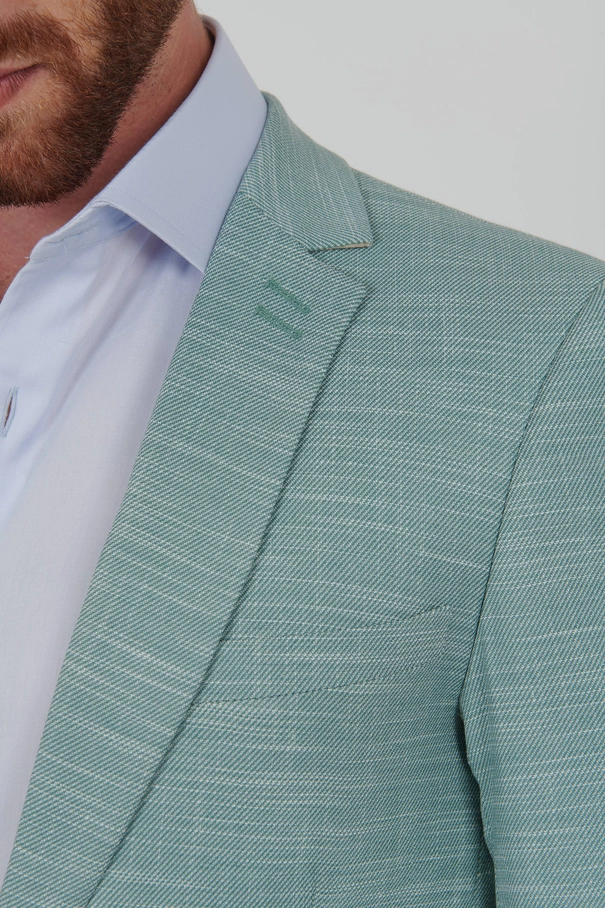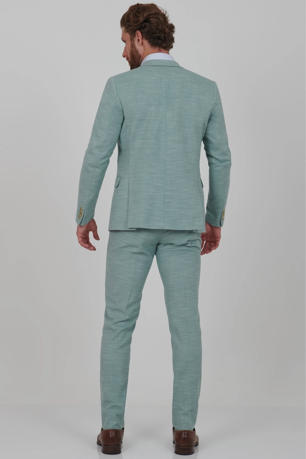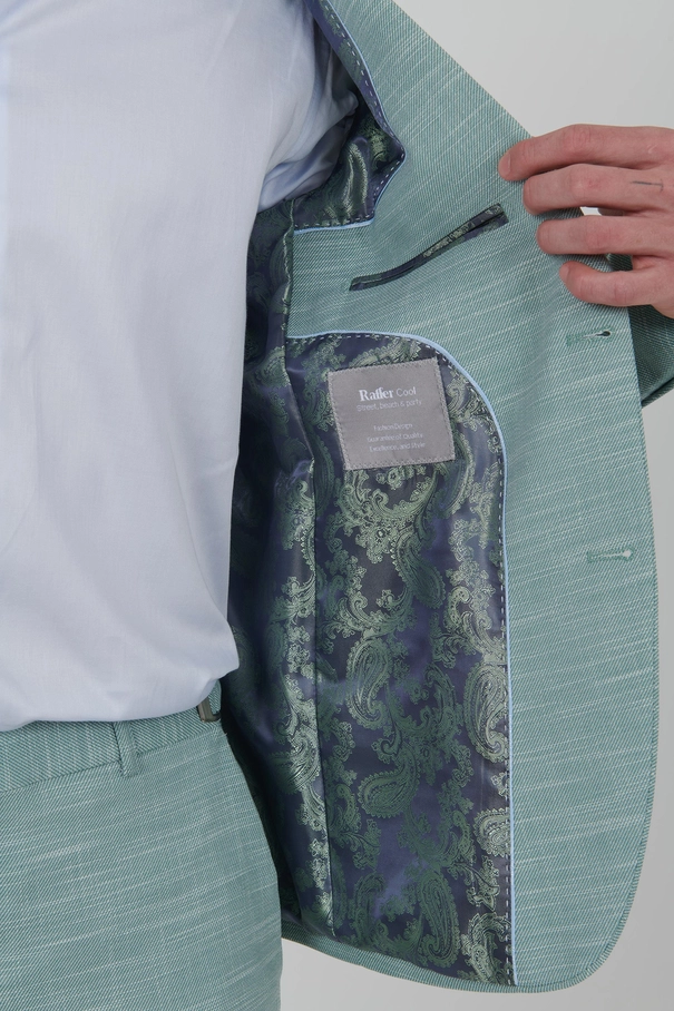 - Este terno Super Slim Fit na cor verde claro é a escolha ideal para quem busca sofisticação com leveza. A tonalidade suave aliada ao corte preciso reforça a proposta de uma alfaiataria contemporânea, ideal para o verão.